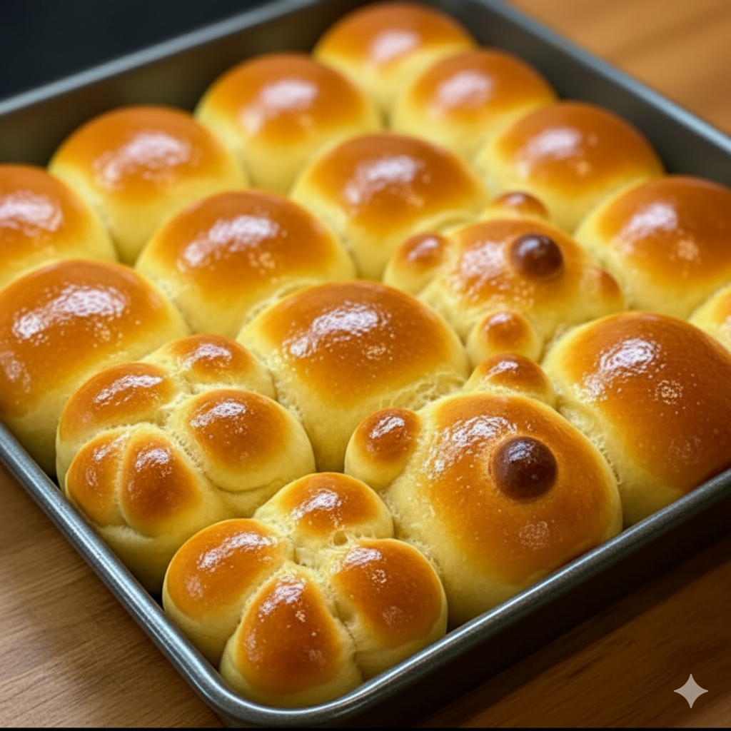Second Proof: Arrange the balls in a greased baking pan. Cover and let them rise for another 30–45 minutes until they are puffy and touching.Bake: Preheat your oven to 180°C. Lightly brush the tops with the egg wash. Bake for 20–25 minutes until they reach a deep golden brown color.