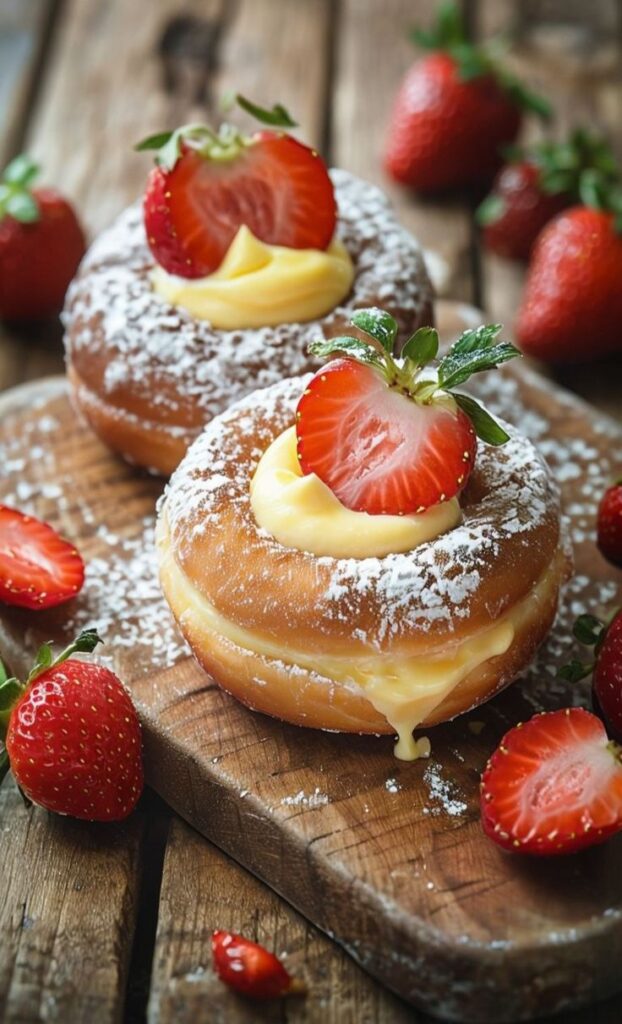 Strawberry Custard Donuts 🍩🍓and Creamy Dessert Delight