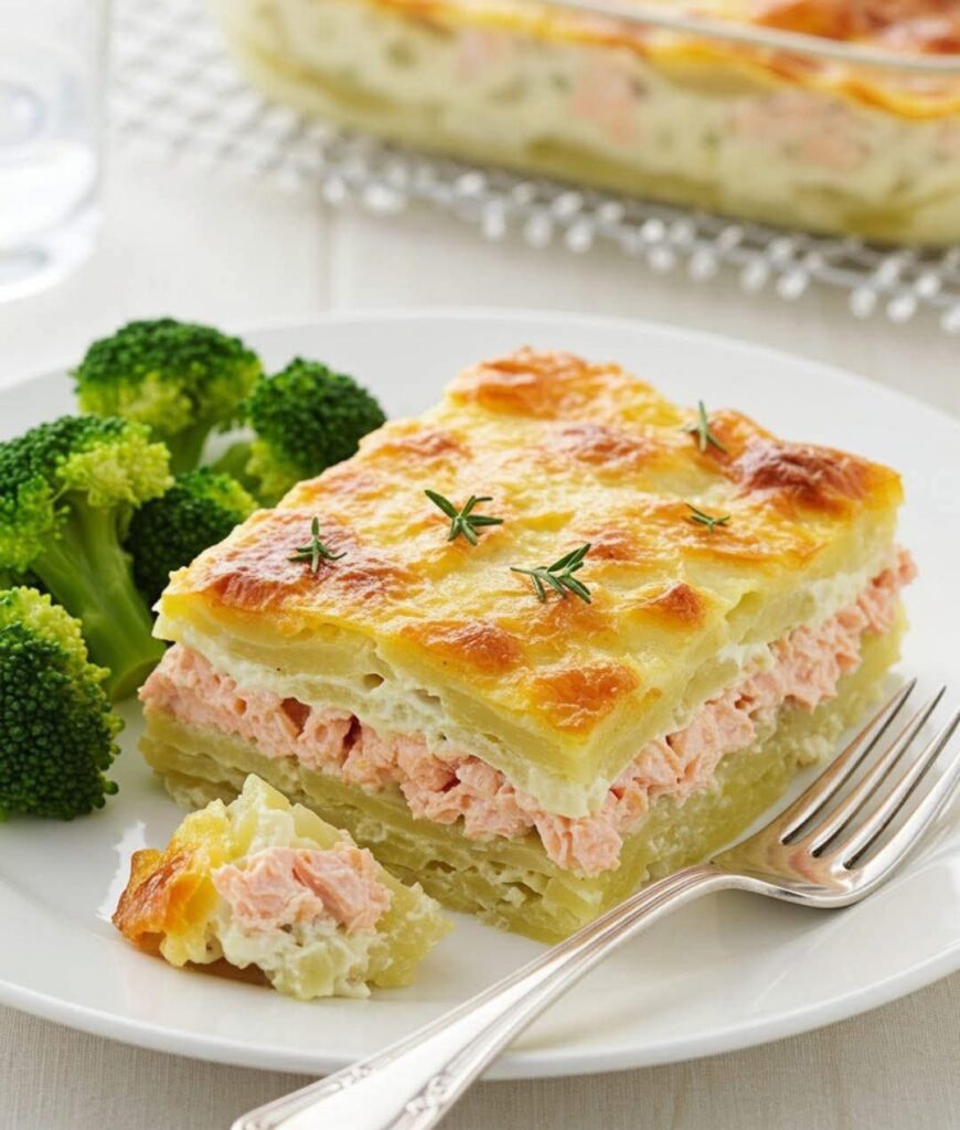 Gratin de Saumon Sans Croûte : Le Plat Familial qui Fait Fondre Tout le Monde 💛🐟 Quand la faim se fait sentir et que tu veux un plat qui plaît …