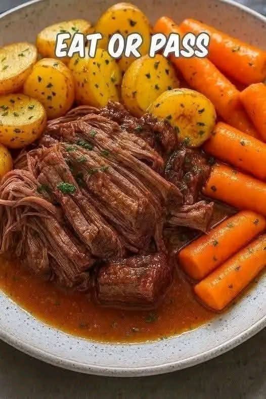 For the Pot Roast3–4 lb (1.5–2 kg) beef chuck roast2 tbsp olive oil1 large onion, sliced4 cloves garlic, minced2 cups beef broth1 cup water2 tbsp tomato paste1 tbsp Worcestershire sauce1 tsp dried thyme1 tsp dried rosemary1 tsp paprikaSalt and black pepper, to tasteVegetables1 lb baby potatoes, halved5 large carrots, peeled and cut into chunksFresh parsley for garnish