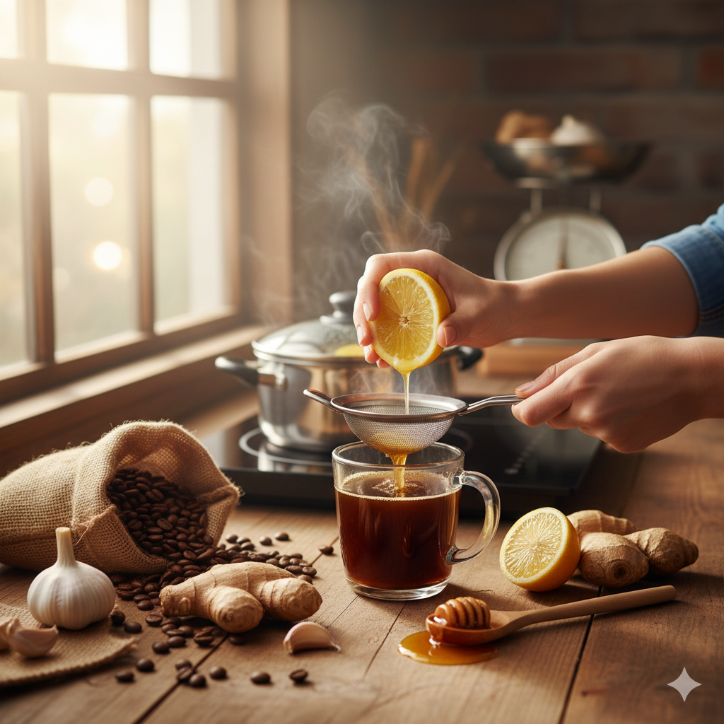 Important Precautions:Avoid Empty Stomachs: Because of the acidity of lemon and the pungency of garlic/ginger, it is best taken after a light meal to prevent stomach irritation.Odor Control: Boiling the garlic with ginger and coffee significantly reduces its strong smell. You can chew a leaf of fresh parsley afterward to freshen your breath.Moderation: One cup per day is sufficient.